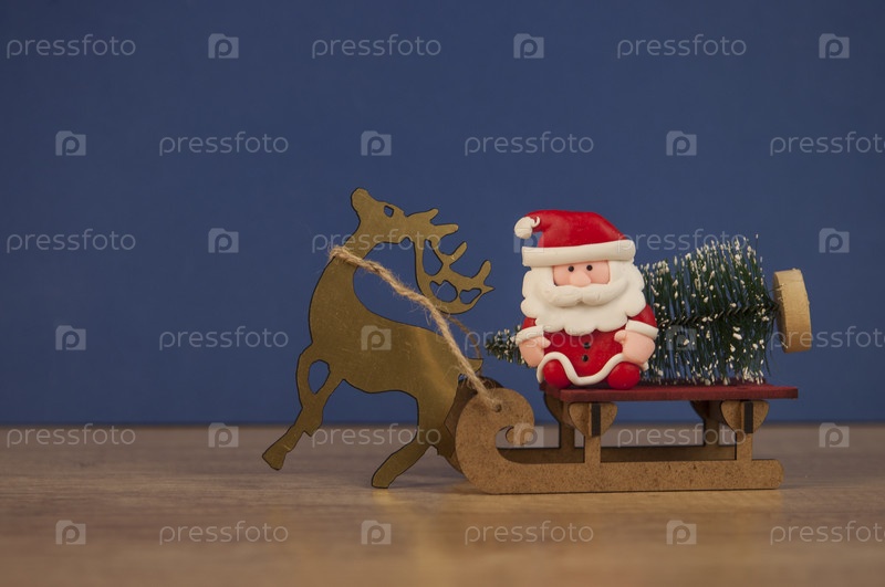 Дед Мороз везет на санях елку. Концепция Рождества и Нового года