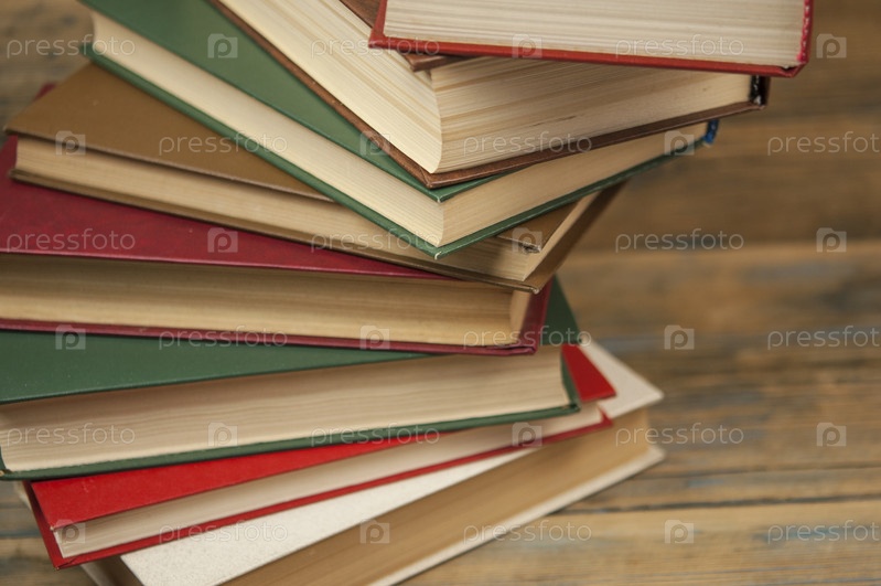 Стопка книг на деревянном столе на деревенском фоне с копией пространства