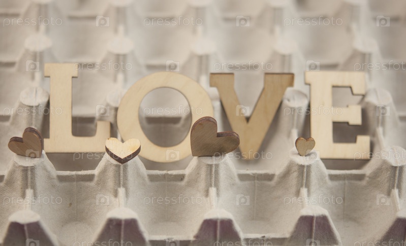 Любовное слово, маленькие сердечки на абстрактном фоне. С днем Святого Валентина