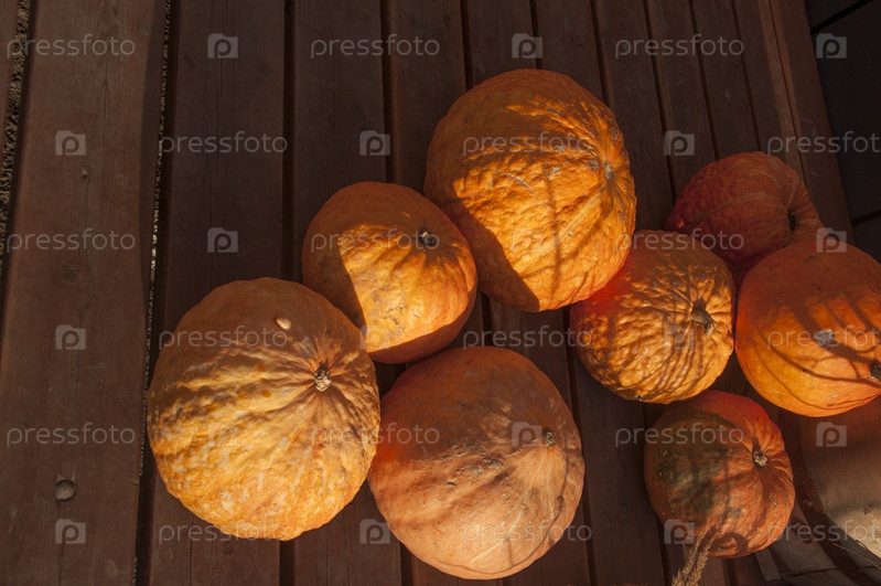 Осенний фон. Спелые тыквы на деревянном фоне. Концепция благодарения и хэллоуина