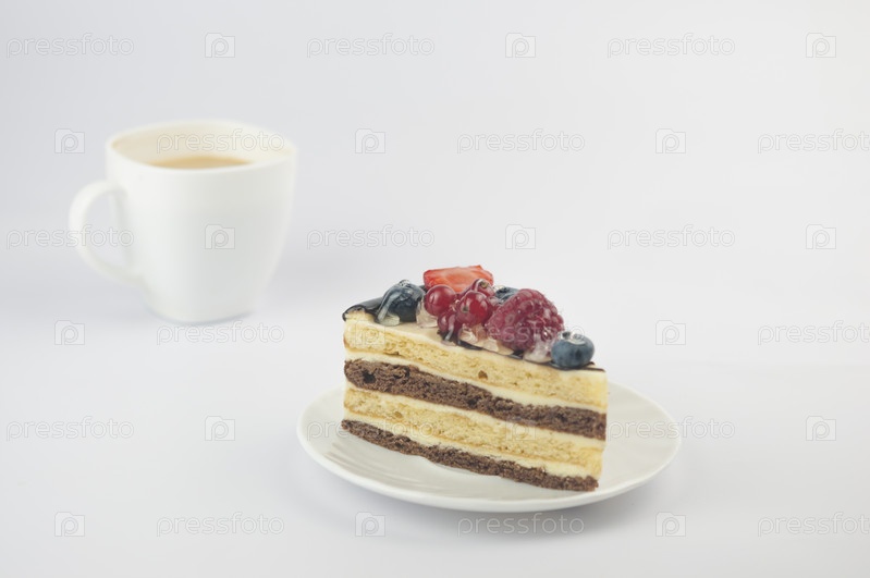 Смешайте ягодный сырный торт на тарелке на белом фоне