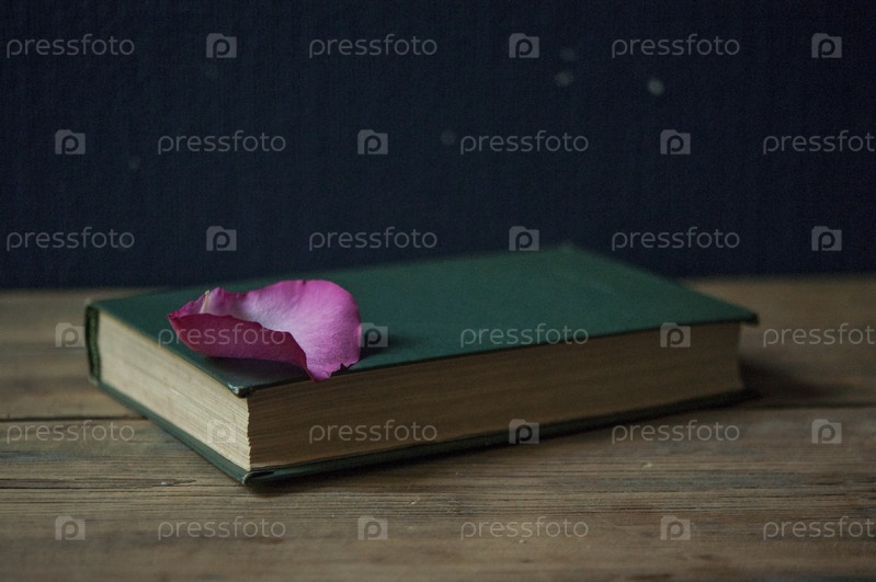 Красная роза на открытой книге. Похоронный символ и концепция соболезнования и религии