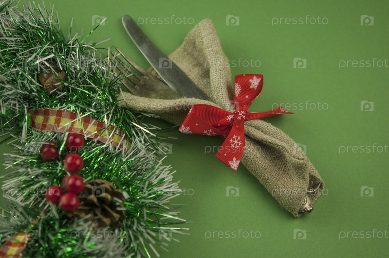 Винтажное столовое серебро, украшенное красной лентой