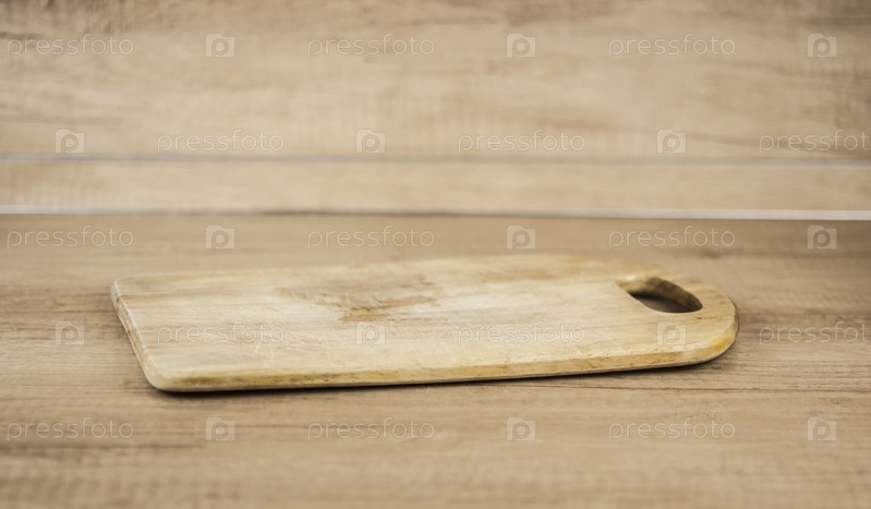 Старая деревянная разделочная доска лежит на деревянной поверхности стола