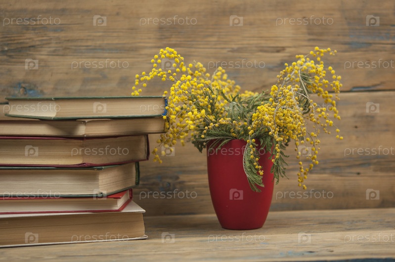 Стопка книг на деревянном столе на деревенском фоне с копией пространства