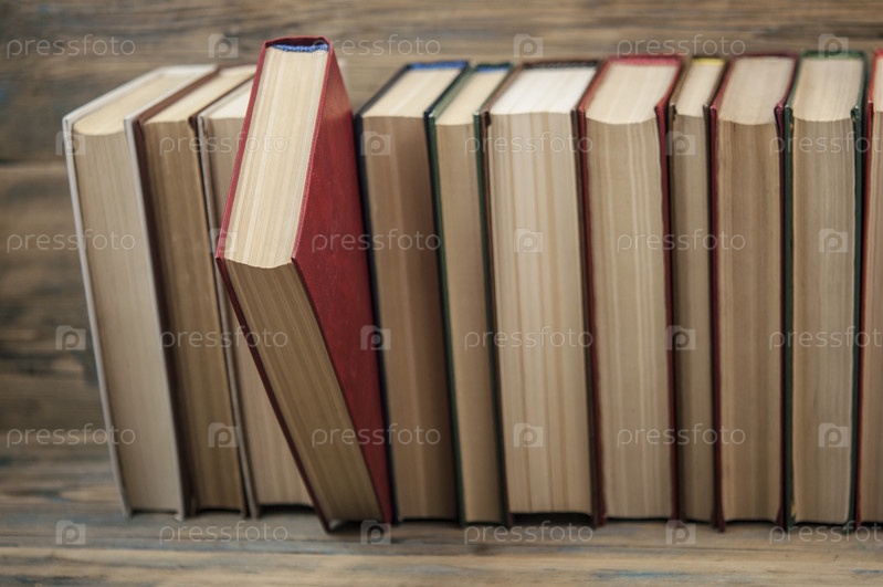 Стопка книг на деревянном столе на деревенском фоне с копией пространства