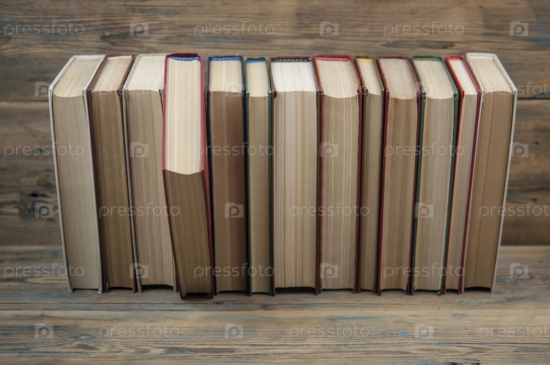 Стопка книг на деревянном столе на деревенском фоне с копией пространства