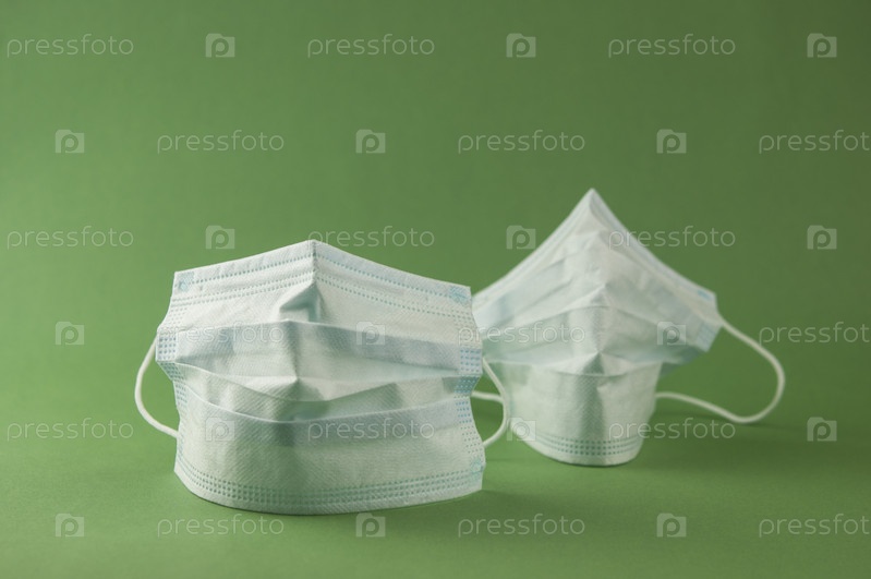 Новая синяя медицинская маска на зеленом фоне