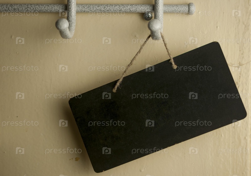 Черная доска доске знак висит на веревке шпагата