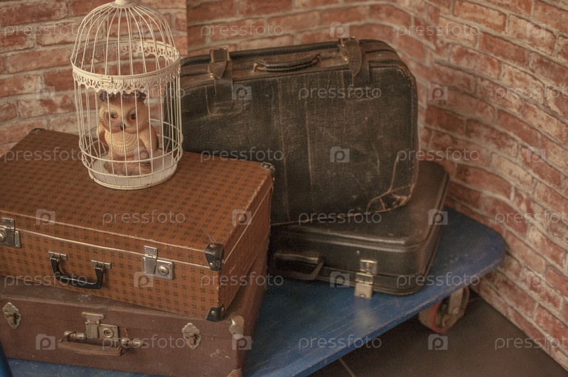 Винтажные старые кожаные витрины для багажа. Концепция путешествия
