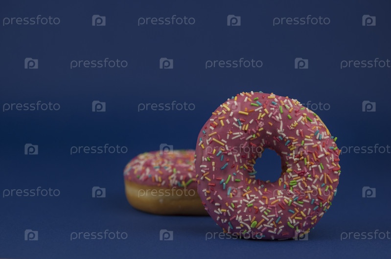 Малиновые пончики на синем фоне