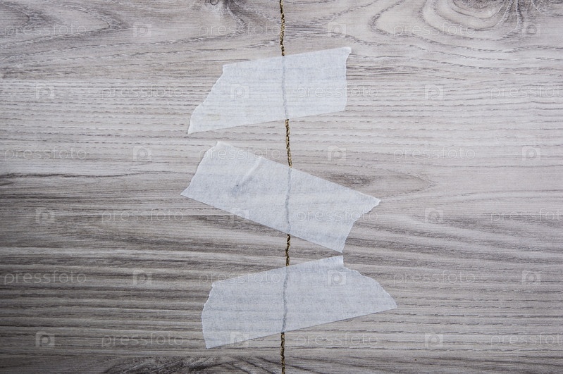 Серый фон из сломанной фанерной доски с текстурой, заклеенной лентой