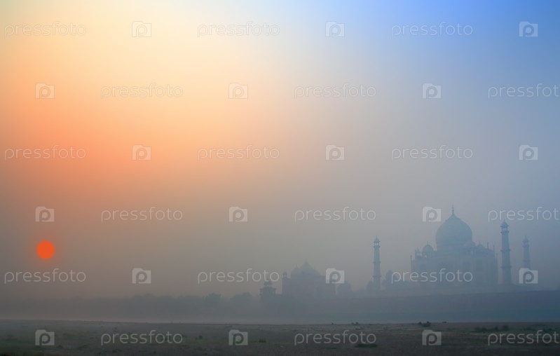 Тадж Махал на рассвете в тумане