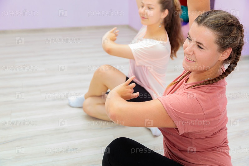 Девушка-инструктор по танцам показывает элементы номера другой девушке. Обучение танцам