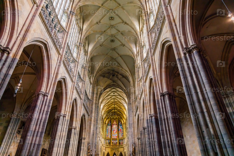 Интерьер внутри католического собора в Праге. Концепция веры и поклонения. Чехия, Прага 13 апреля 2018 г