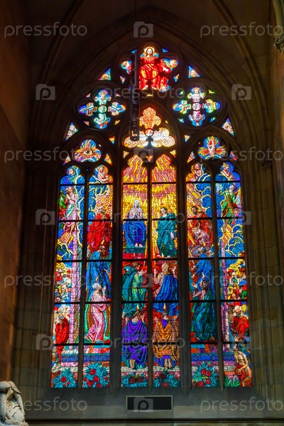 Разноцветные витражи в католическом соборе Святого Вита в Праге