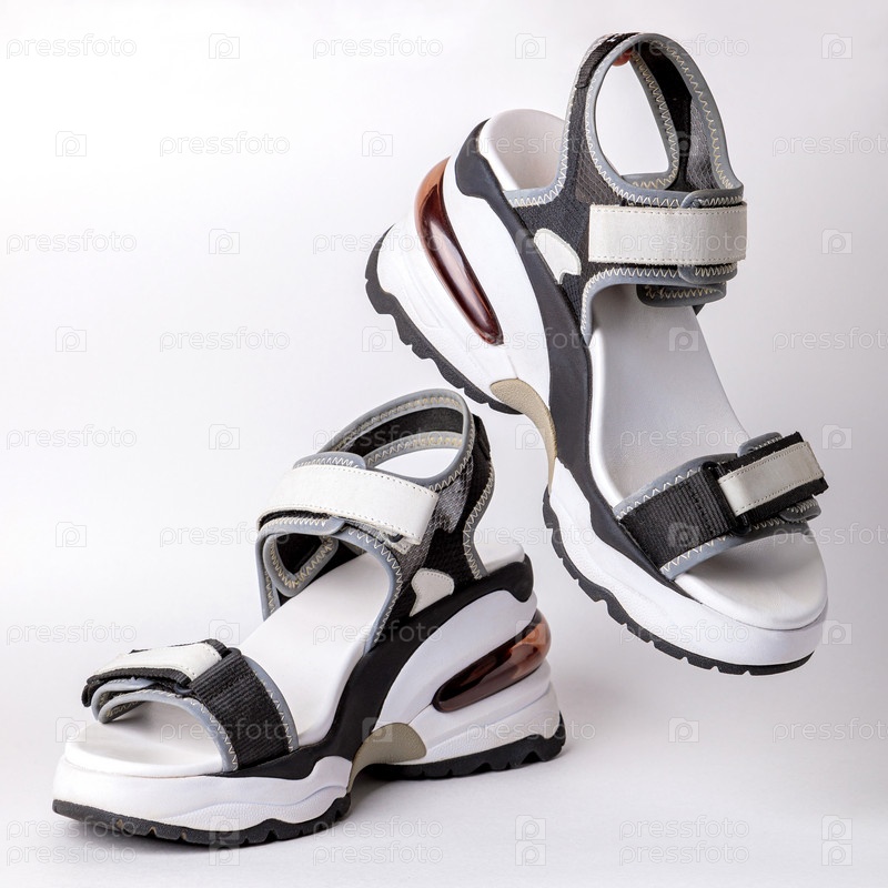 Женские, модные, спортивные сандалии на белом фоне