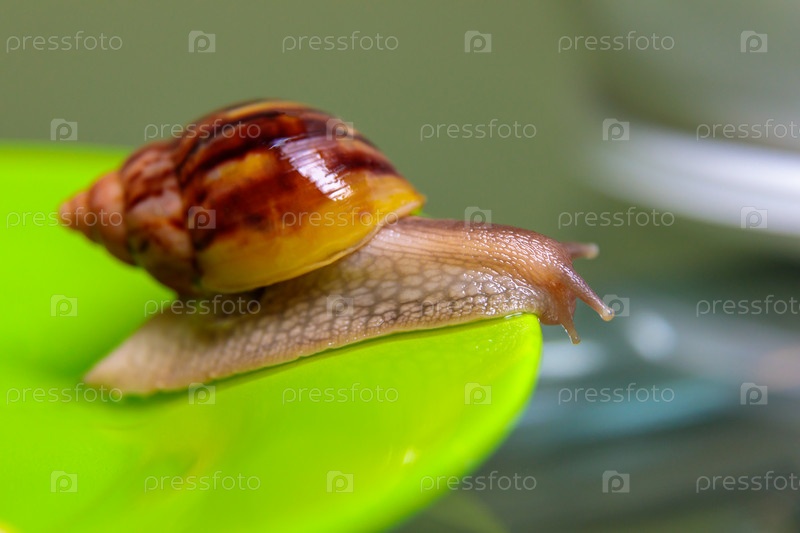По краю тарелки скользит большая белая улитка. Медленно ползают крупные белые моллюски. Крупный план