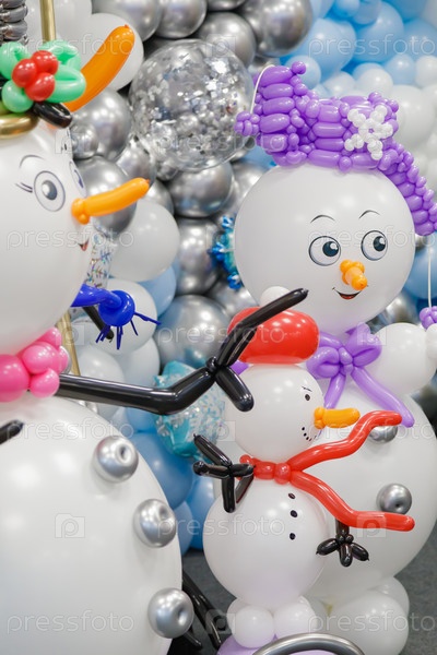 Новогодние фигурки снеговиков из воздушных шаров. Празднование нового года, рождества