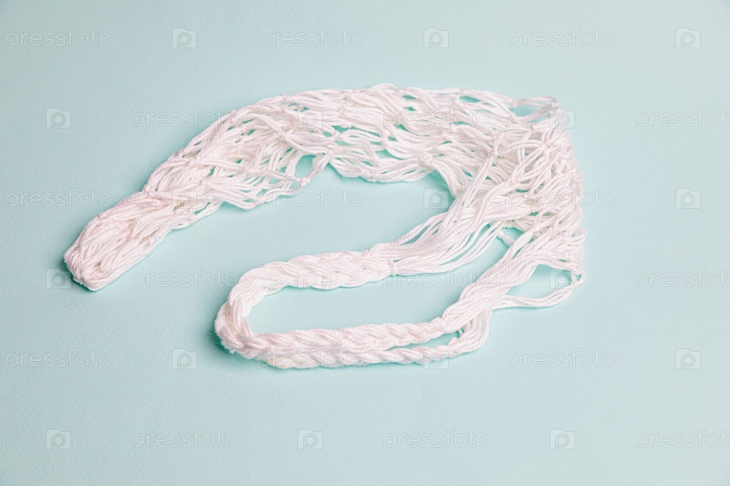 Экологичная сетка на синем фоне. Сумка из хлопкового шнура