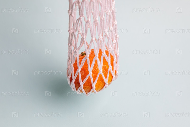 Экологичная сетка с мандаринами на синем фоне