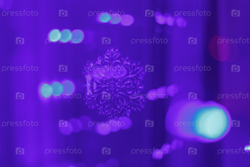 Синий боке на сиреневом фоне с размытой снежинкой. Сверкающие огоньки не в резкости. Расфокусировать