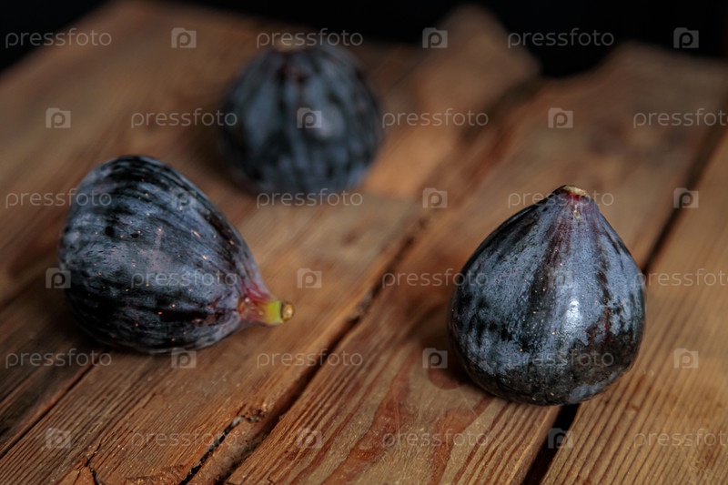 Свежий фиолетовый инжир на деревянном фоне из старых досок. Экзотический сырой инжир