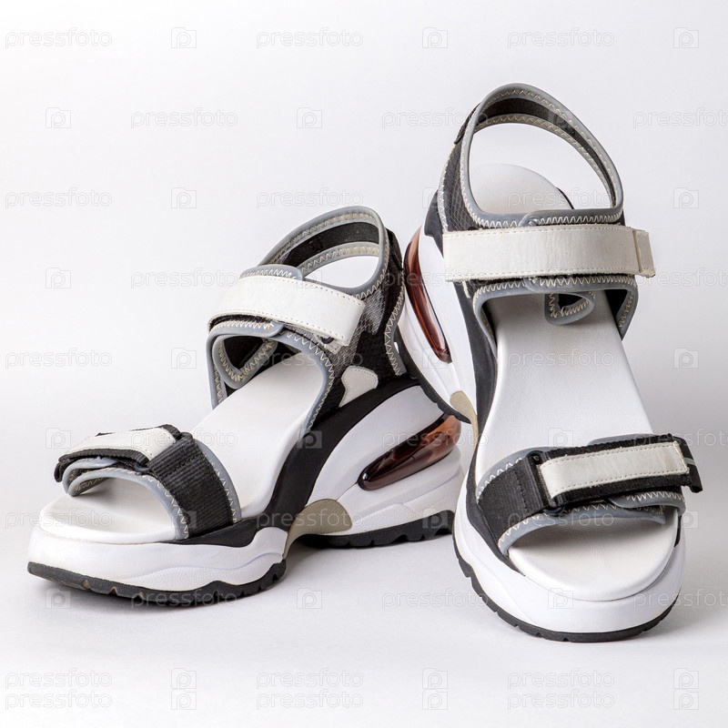 Женские, модные, спортивные сандалии на белом фоне