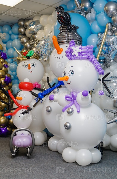 Новогодние фигурки снеговиков из воздушных шаров. Празднование нового года, рождества