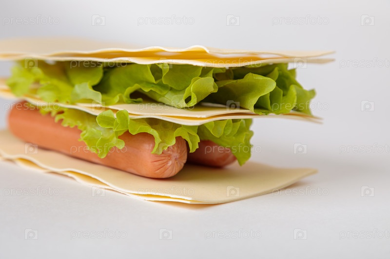 Сэндвич из сырых листьев лазаньи, салата и сосисок