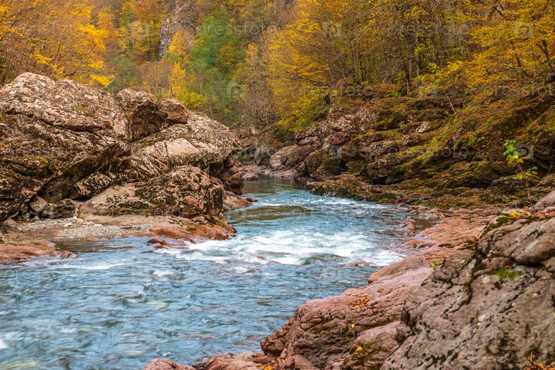 Пороги и перекаты на быстрой горной реке