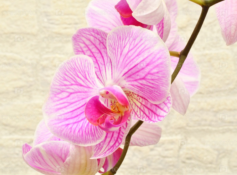 Цветки фаленопсиса (лат. Phalaenopsis) или орхидеи (лат. Orchidaceae) бело-фиолетового цвета