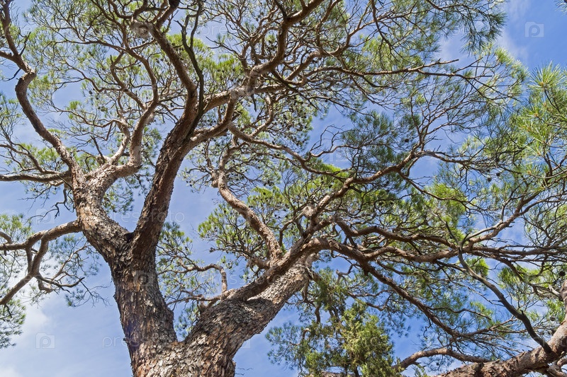 Крона реликтовой сосны на фоне неба. Новый Свет, Крым