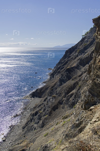 Обрывистый морской берег. Крым, солнечный день в сентябре