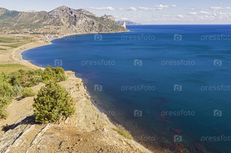 Бухта на черноморском побережье Крыма. Окрестности села Веселое. Солнечный день в сентябре