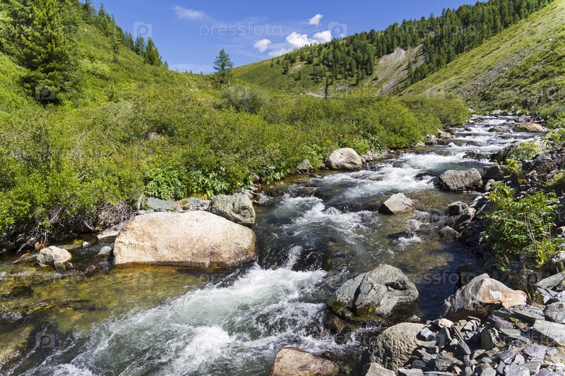 Верховья реки Ештыкол, стекающей с Оройского перевала. Август. Горный Алтай