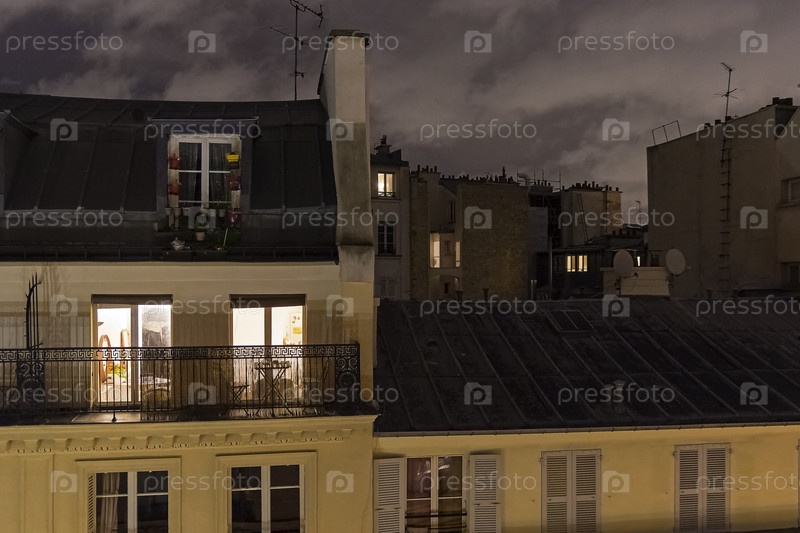Крыши домов ночью. Париж, Франция