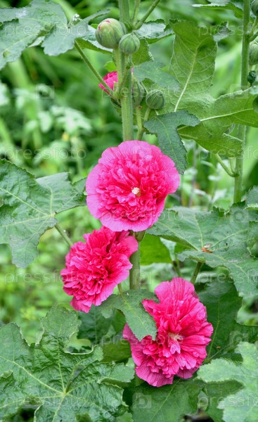 Цветок Розовая роза (лат. Alcea rosea) или Мальва (лат. Malva) пурпурная