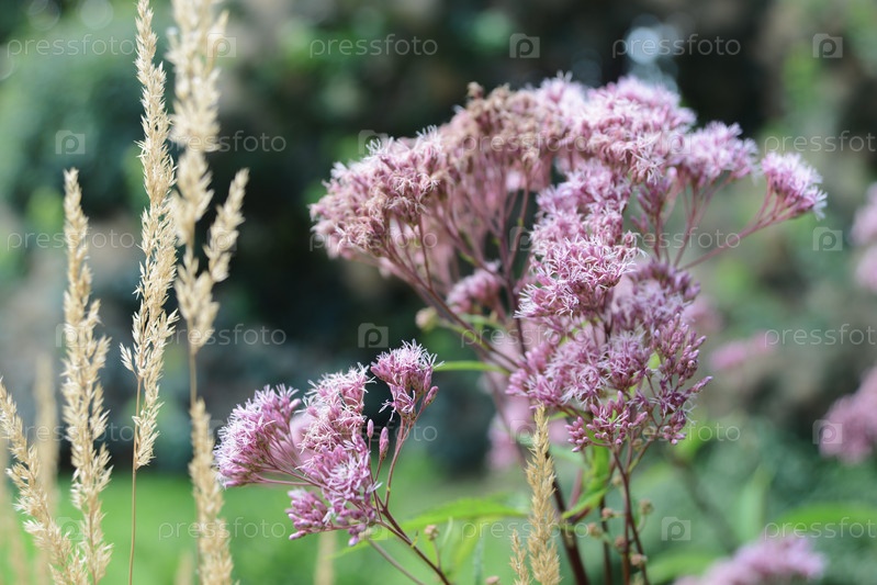 Посконник крупным планом в саду. Цветочный фон