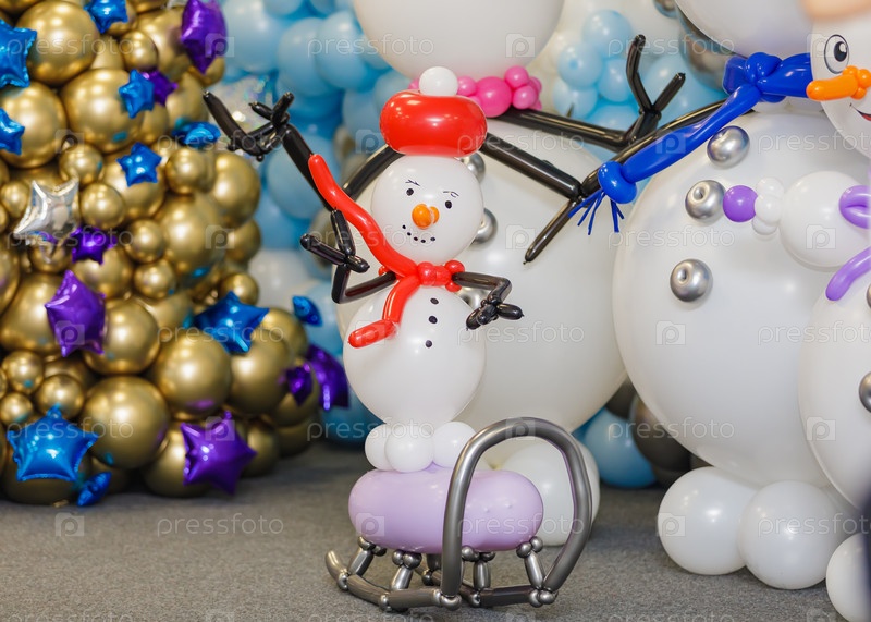 Новогодние фигурки снеговиков из воздушных шаров. Празднование нового года, рождества
