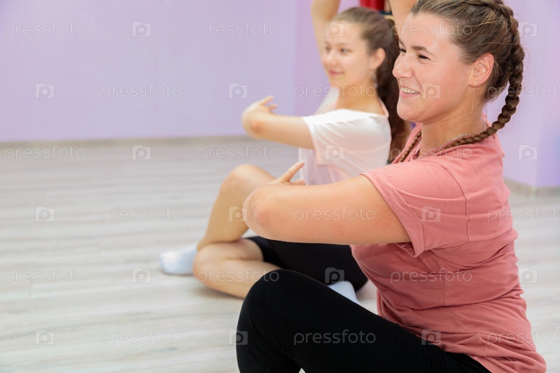 Девушка-инструктор по танцам показывает элементы номера другой девушке. Обучение танцам