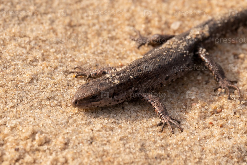 Маленькая живородящая ящерица Lacerta agilis в естественной среде обитания. крупный план