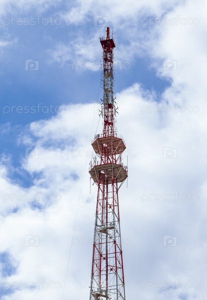 Радиовещательная вышка для передачи радио и телевидения с большим количеством установленных антенн. Тула, Россия