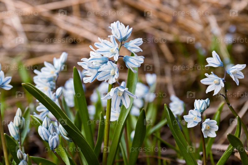 Цветы Puschkinia scilloides libanotica голубые с зеленым оттенком распустились в начале весны. крупный план