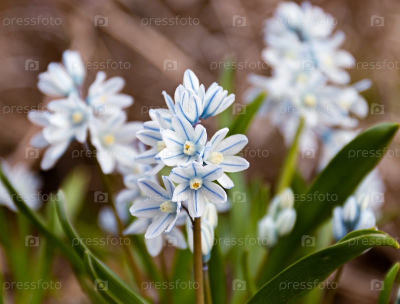Цветы Puschkinia scilloides libanotica голубые с зеленым оттенком распустились в начале весны. крупный план