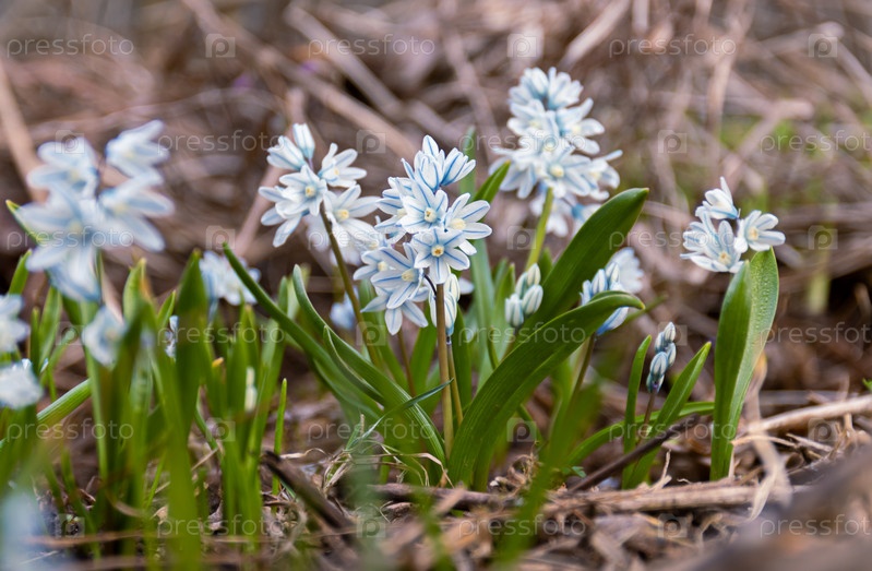Цветы Puschkinia scilloides libanotica голубые с зеленым оттенком распустились в начале весны. крупный план