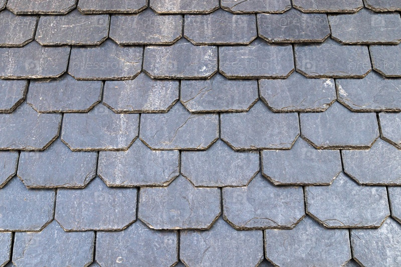 Шиферная крыша дома и сланцевый фасад фона, крупным планом