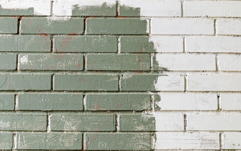 Стена здания выполнена из белого силикатного кирпича и частично окрашена зеленой краской. текстура для фона