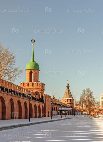 Памятник архитектуры Одоевская надворожная башня-Казанская башня-Тульский кремль XVI в. Россия. Русская достопримечательность. зимний пейзаж