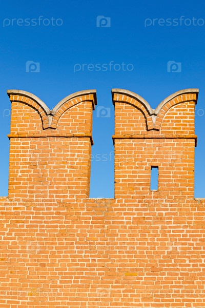 Фрагмент стены Тульского Кремля, Тула, Россия. крупным планом